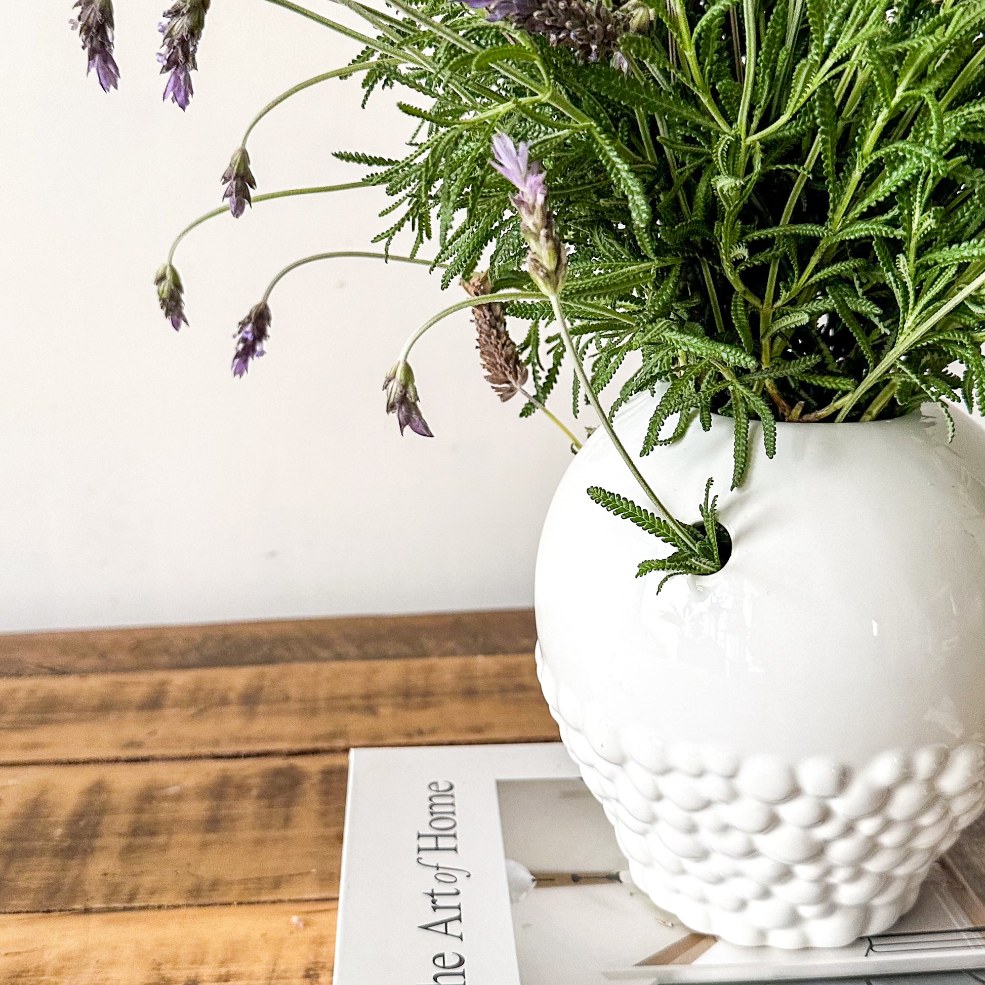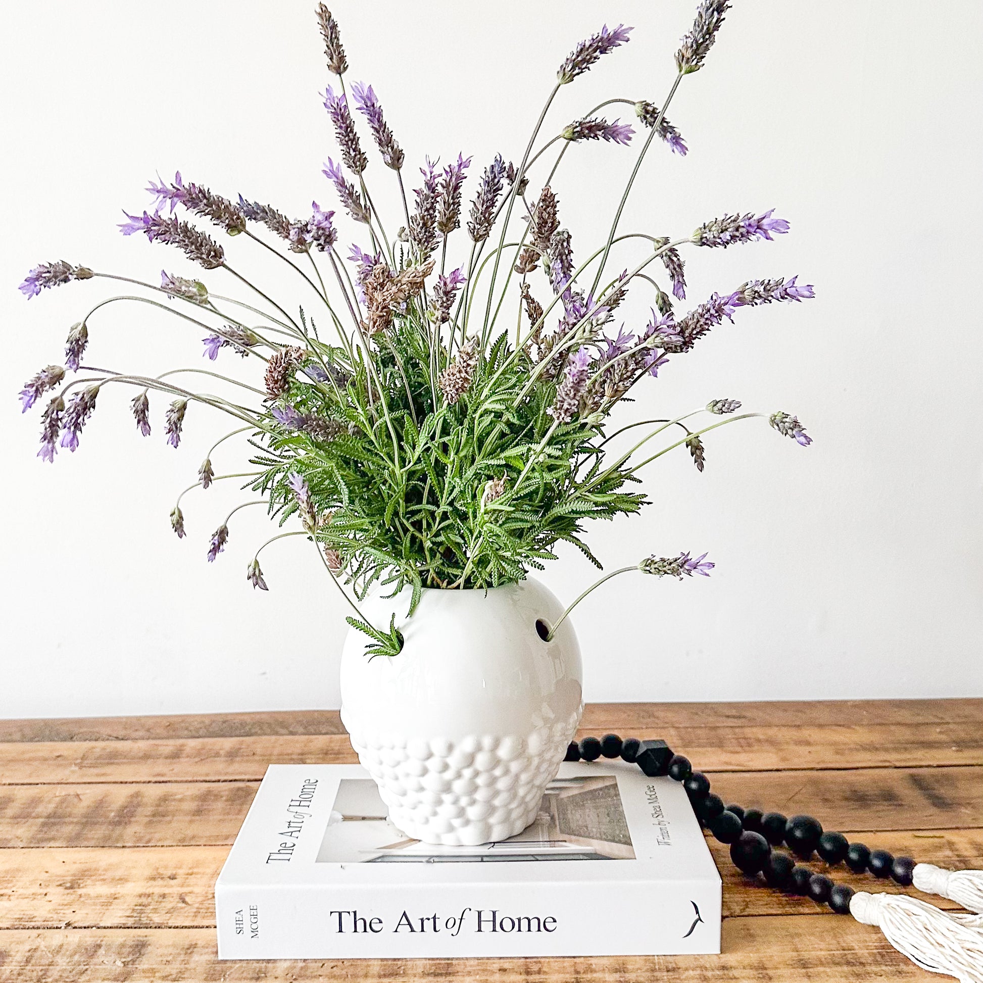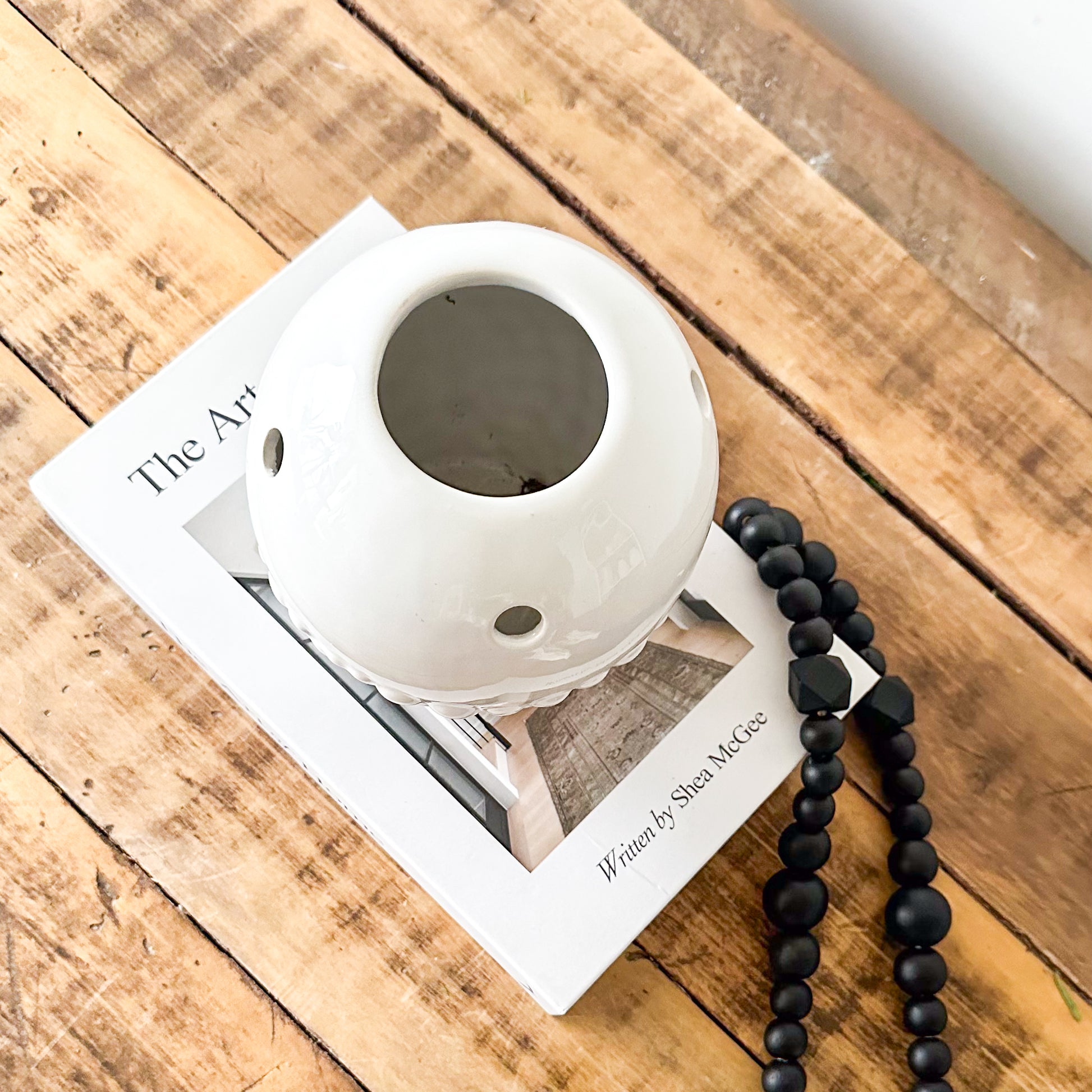 Este florero de cerámica redondo, con 15 cm de alto, 14 cm de ancho en la boca y una base de 8,5 cm, destaca por sus delicadas perforaciones laterales de 1,5 cm. Diseñado para crear arreglos florales modernos y a la vanguardia, aporta un toque sofisticado y contemporáneo a cualquier ambiente. Ideal para quienes buscan elegancia y estilo en su decoración.