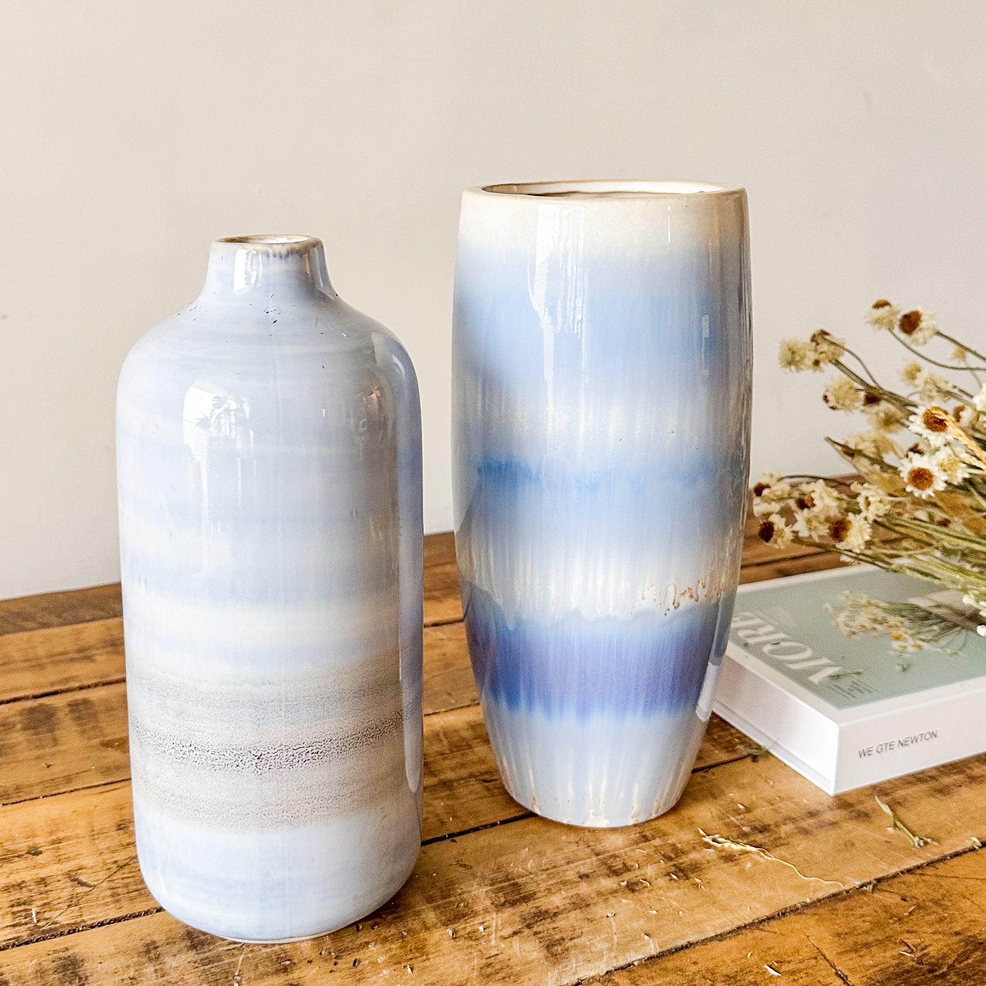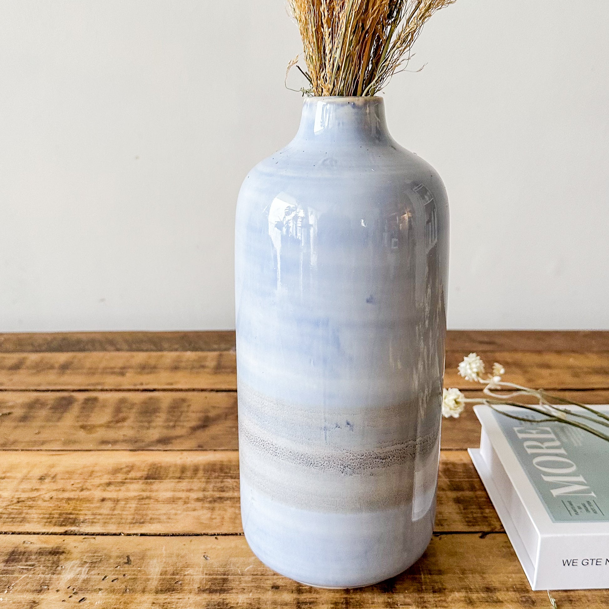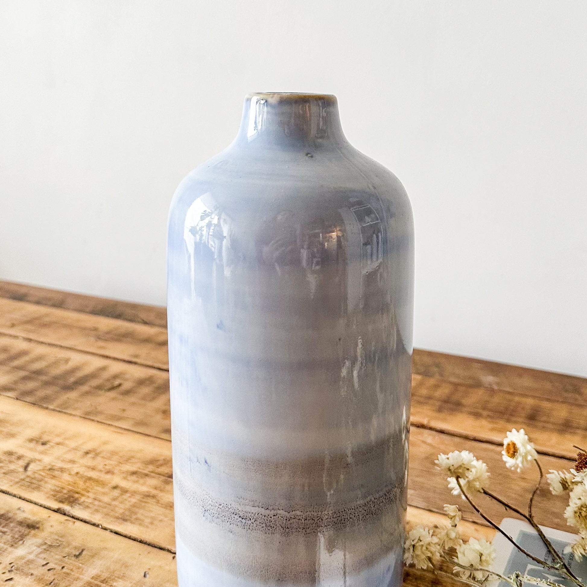 Descubra la elegancia artesanal con nuestros Floreros Cerámica Cielo, pintados a mano con esmalte destonalizado que aporta un carácter único y sofisticado a cada pieza. Su acabado exclusivo resalta la delicadeza de la cerámica, convirtiéndolos en un detalle decorativo ideal para ambientes contemporáneos y clásicos, que realzan con sutileza la belleza natural de sus flores.
