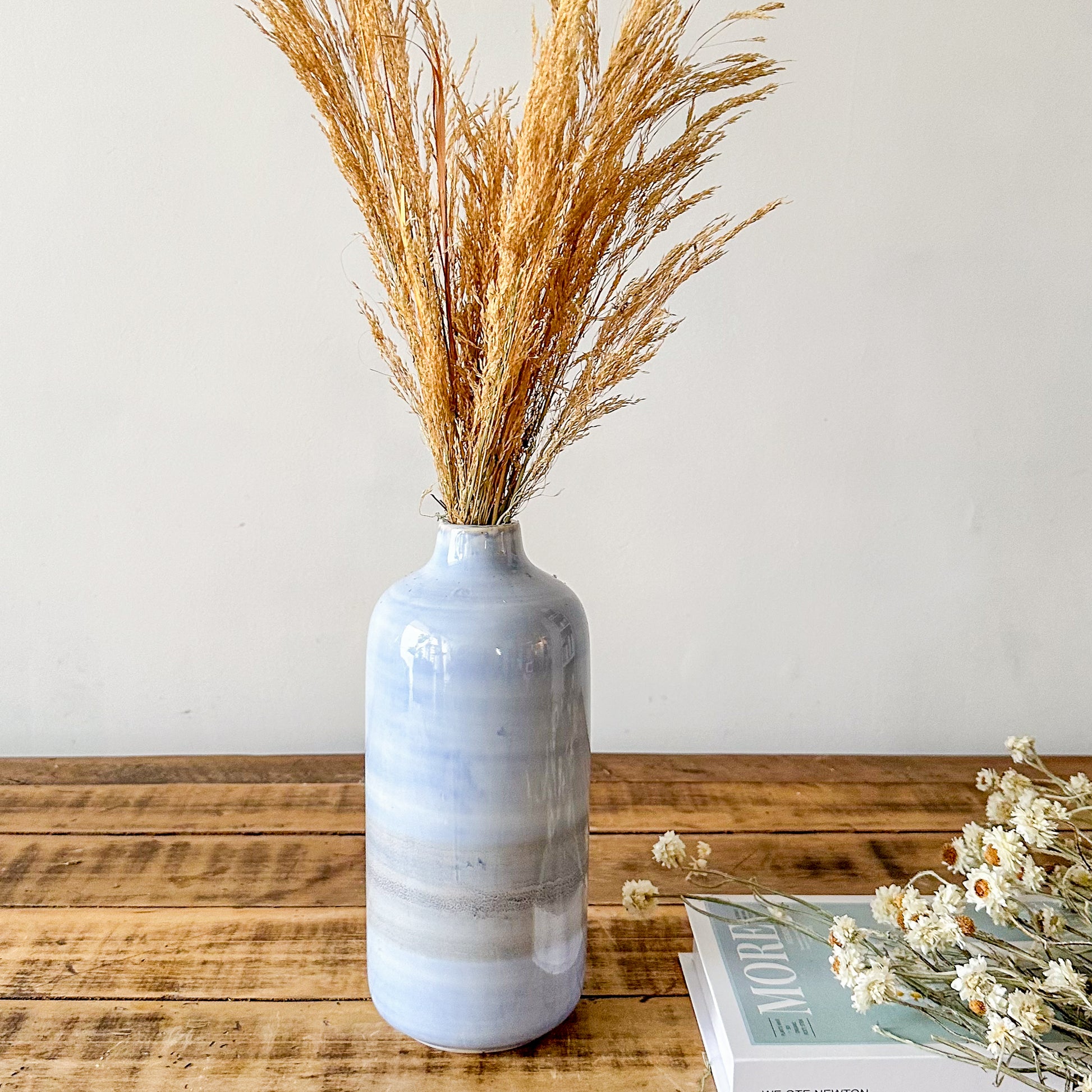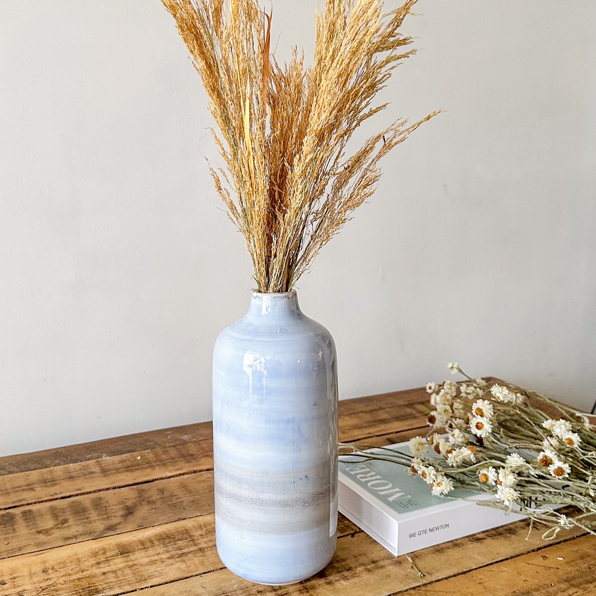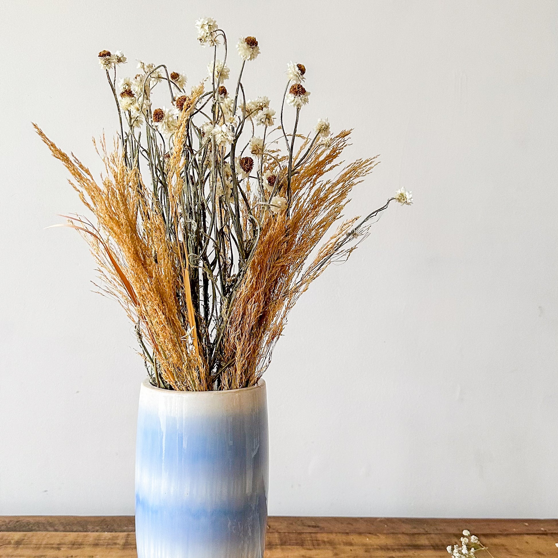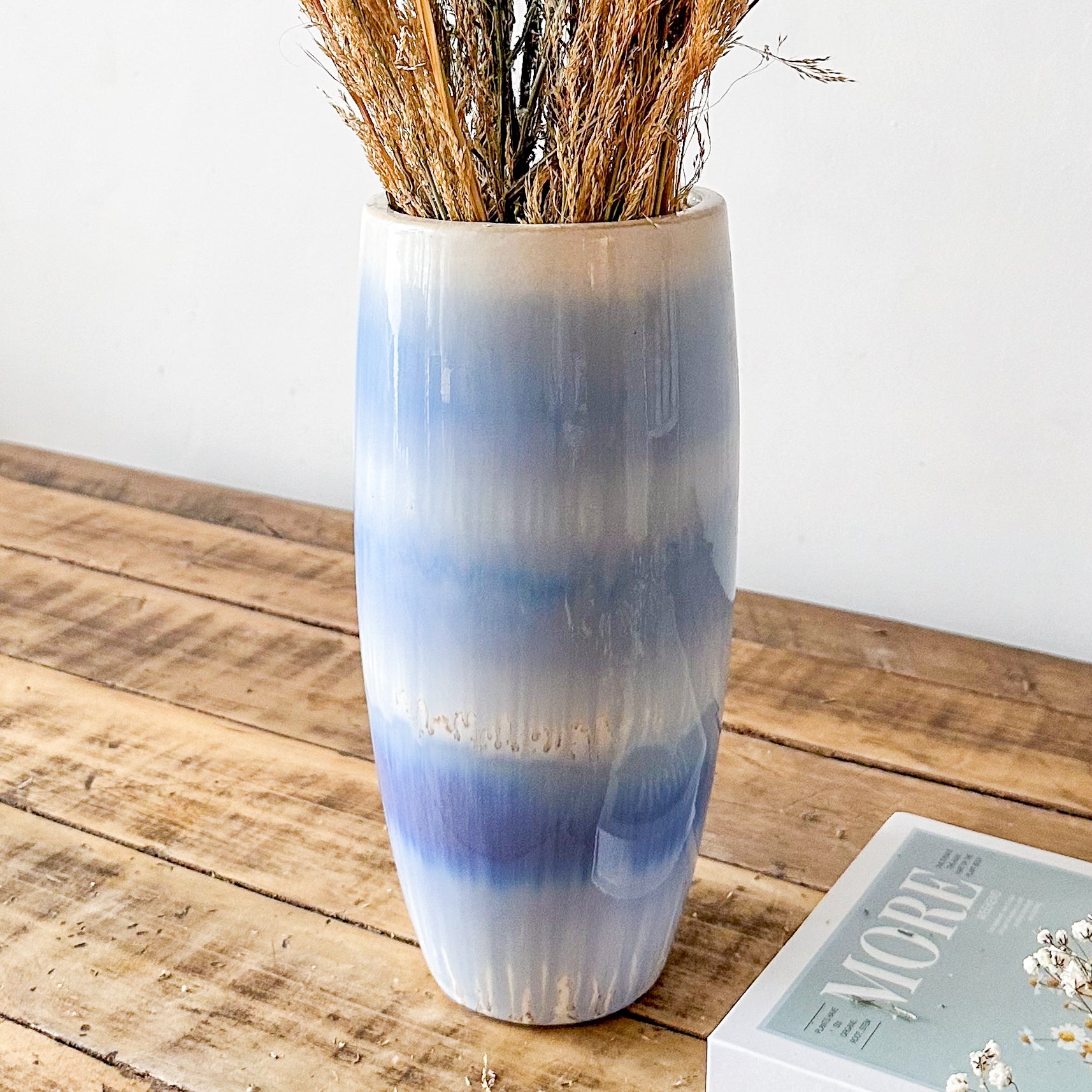 Descubra la elegancia artesanal con nuestros Floreros Cerámica Cielo, pintados a mano con esmalte destonalizado que aporta un carácter único y sofisticado a cada pieza. Su acabado exclusivo resalta la delicadeza de la cerámica, convirtiéndolos en un detalle decorativo ideal para ambientes contemporáneos y clásicos, que realzan con sutileza la belleza natural de sus flores.