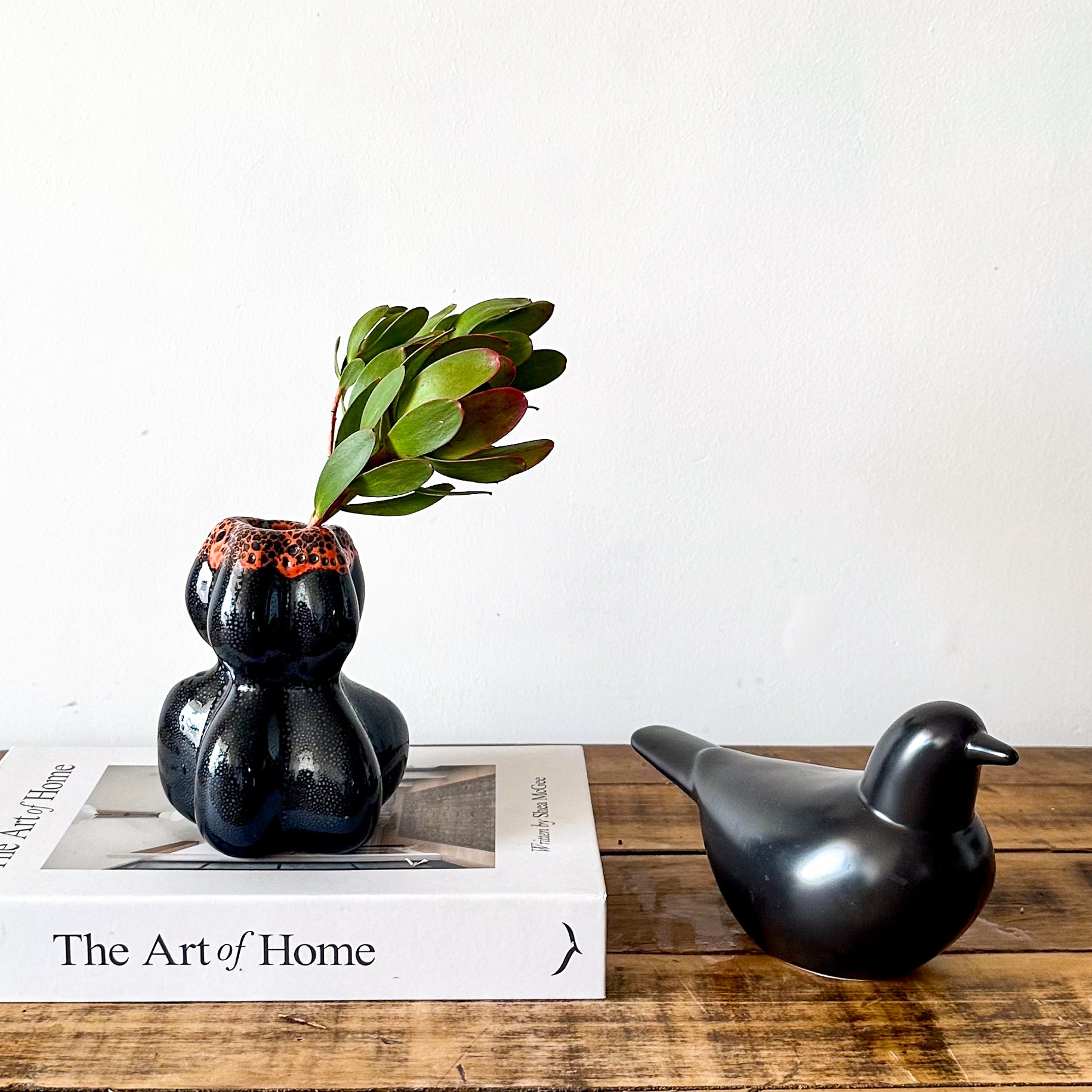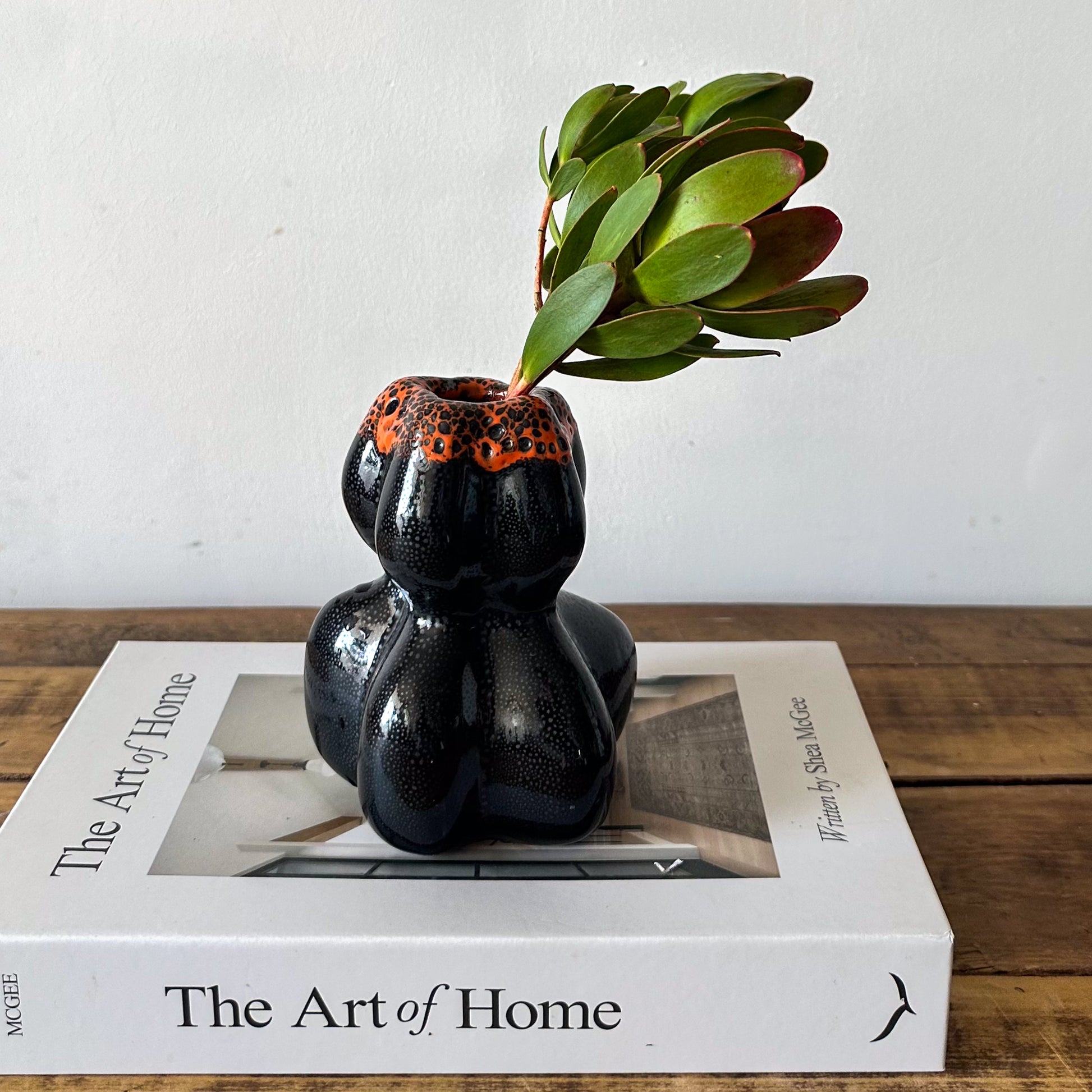 Este mini florero de cerámica en tonos negro y rojo combina elegancia y diseño orgánico, aportando un toque sofisticado a cualquier espacio. Su tamaño compacto de 11x14 cm lo hace ideal para resaltar flores frescas o secas, mientras que su acabado y formas naturales ofrecen armonía y estilo moderno. Perfecto para realzar la decoración de tu hogar con un accesorio sutil pero impactante.