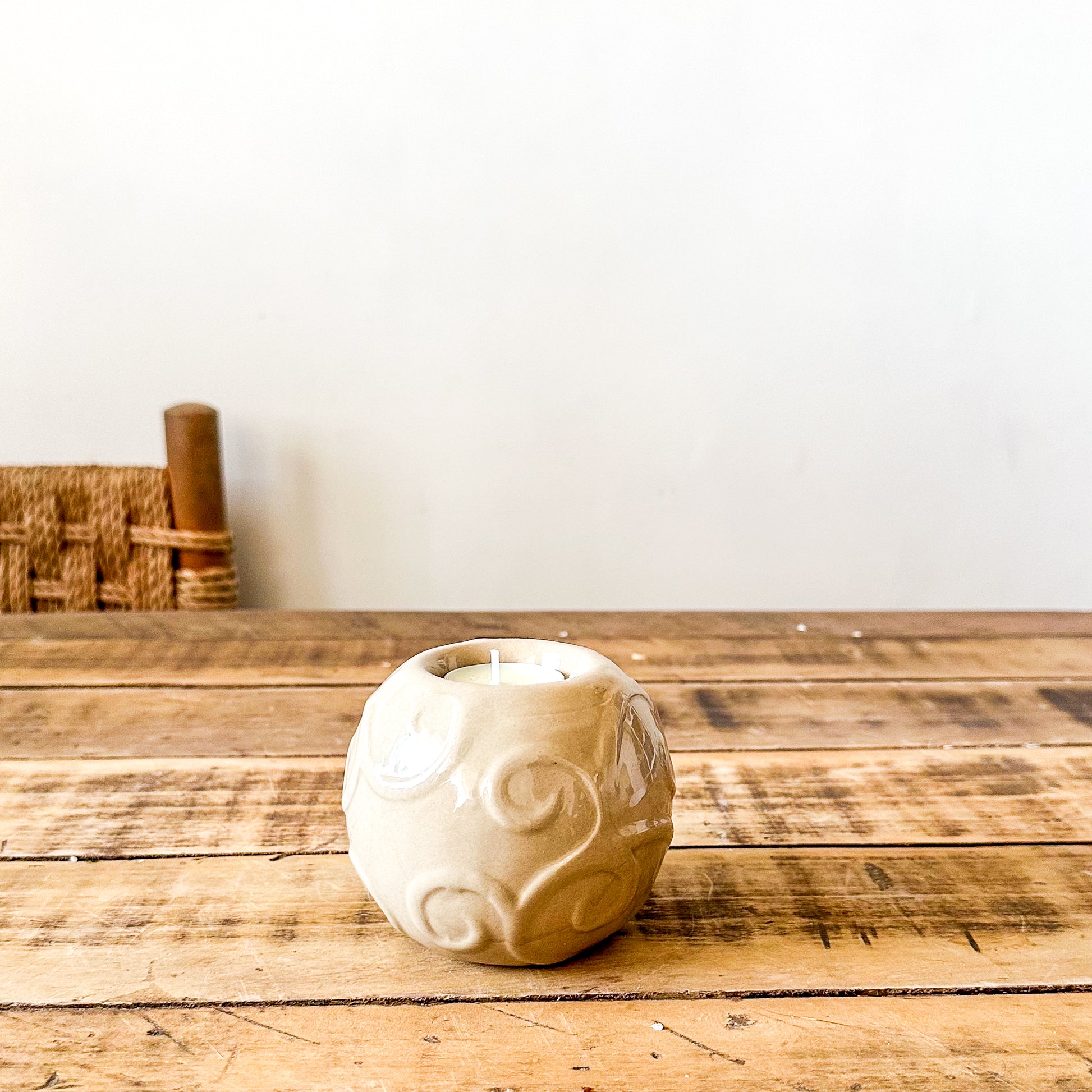 Portavela Cerámica Esmaltada con Relieves - 4 Diseños Únicos
