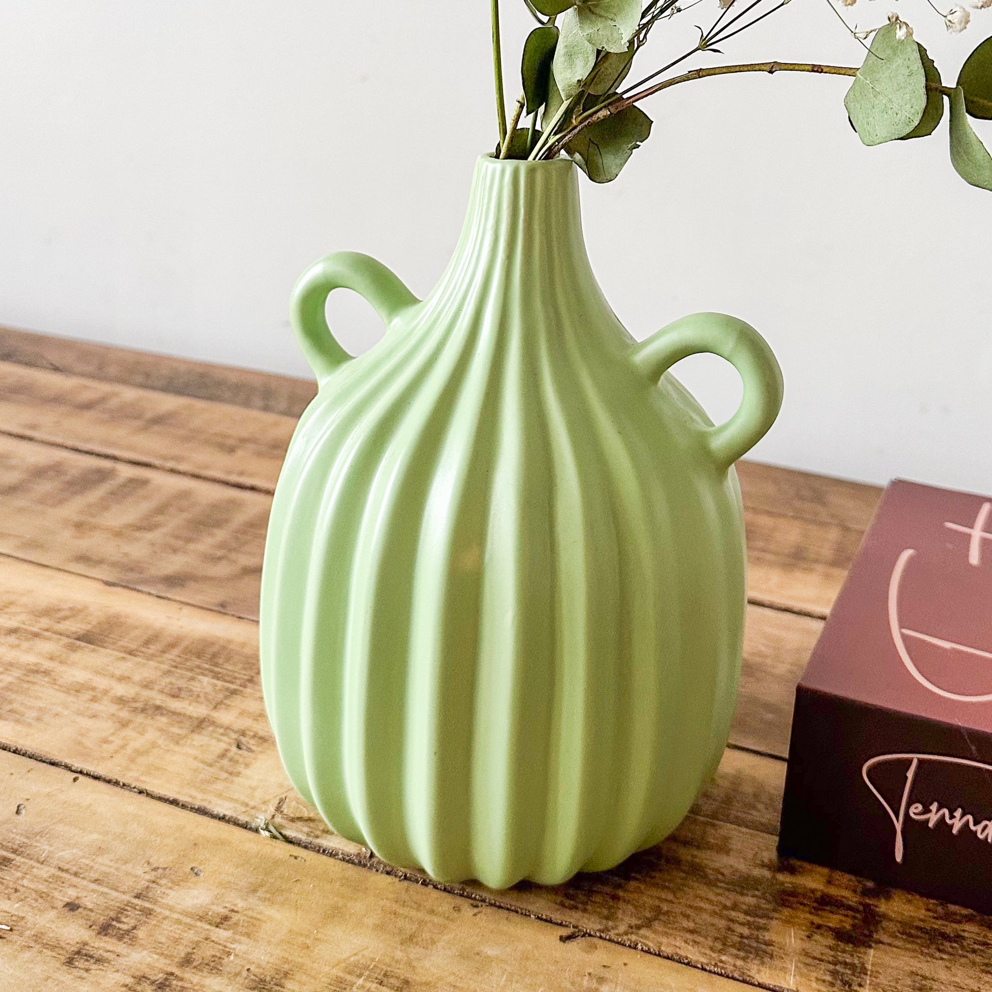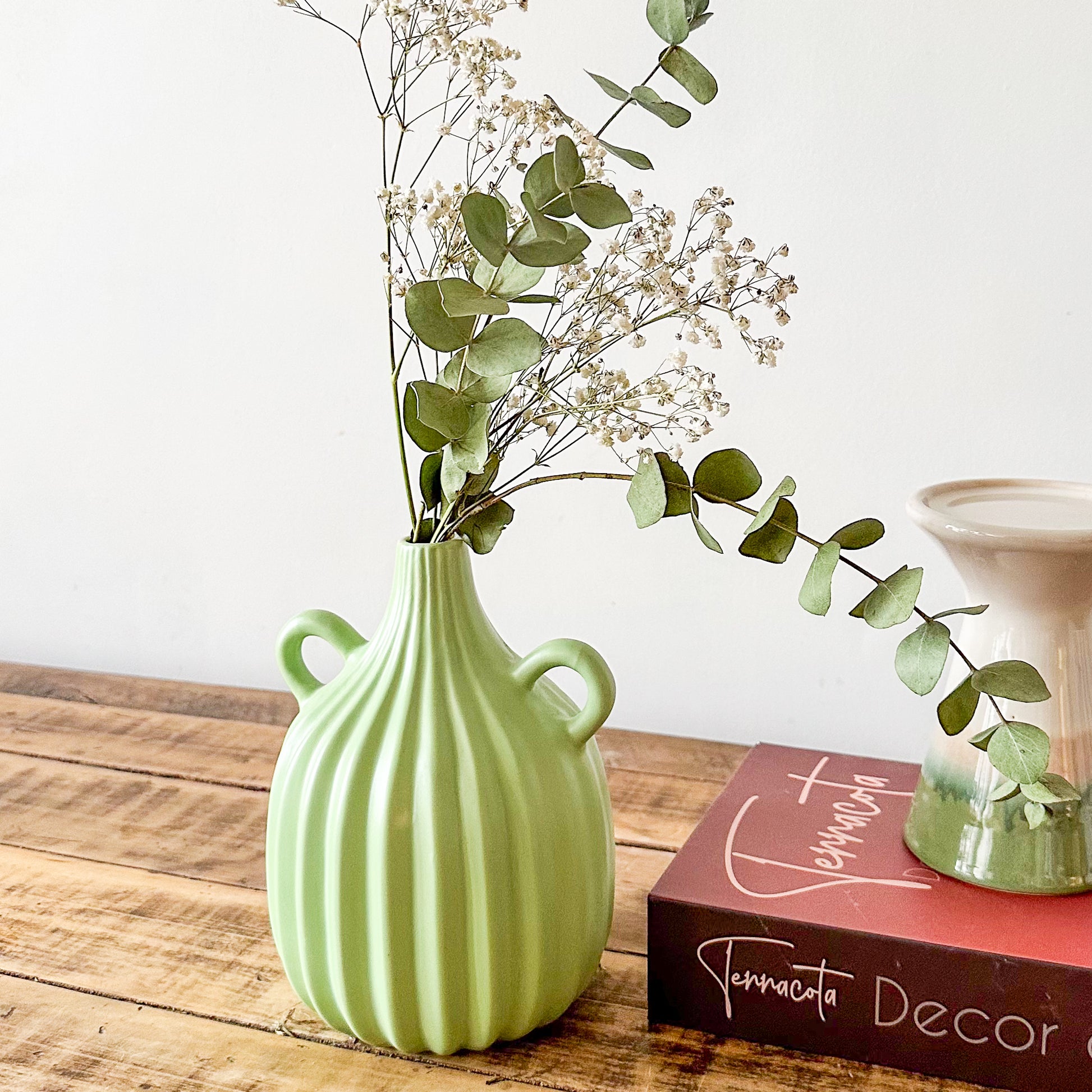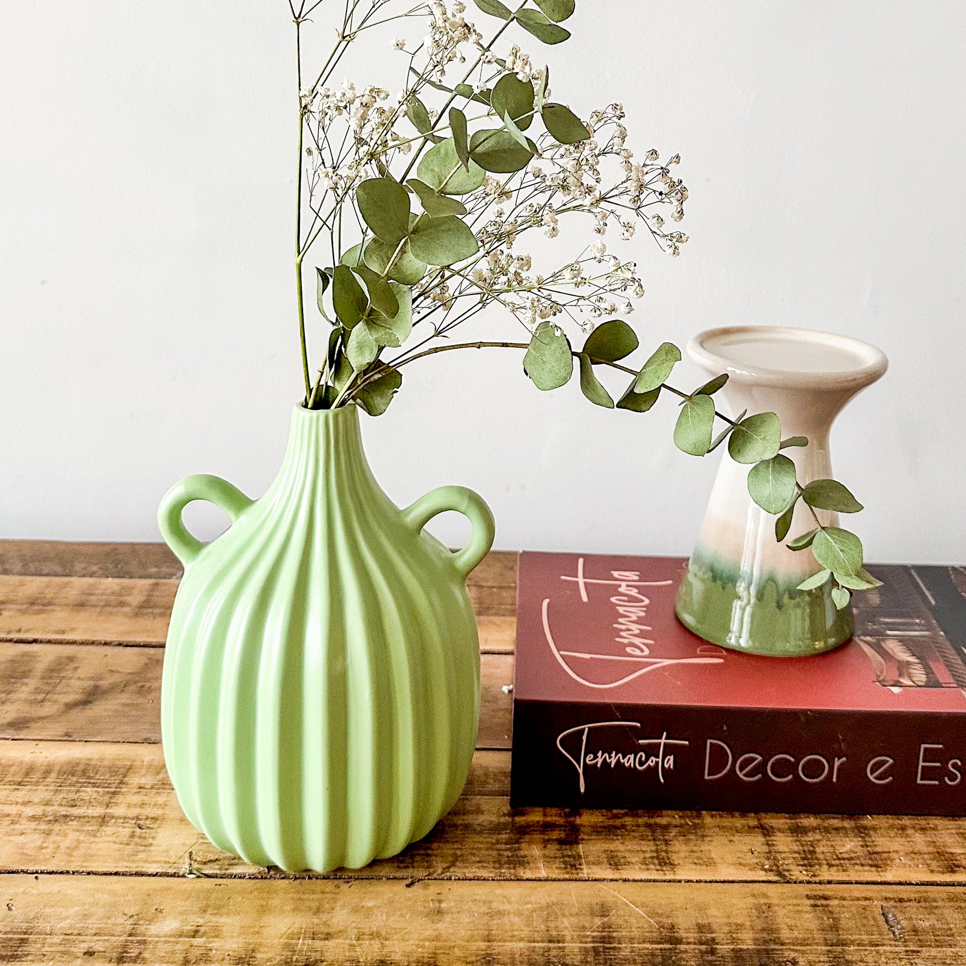 La Vasija Verde Listado, con sus dimensiones de 21x14 cm y una boca de 2,5 cm, destaca por su elegante diseño en un vibrante tono verde listado. Ideal para realzar cualquier ambiente, combina sofisticación y frescura, aportando un toque distintivo y armonioso a la decoración de tu espacio. Perfecta para exhibir flores o como pieza decorativa única.